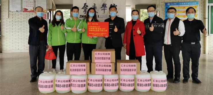 3月6日,佛山市汇丰旅行社有限公司总经理张昱校友专程回到母校,捐赠84除菌液250公斤、免洗抑菌洗手液120升等物资,助力母校抗疫。在简单的捐赠仪式上,她说:“母校培养了我,这个时候我应该为母校出一份力。”