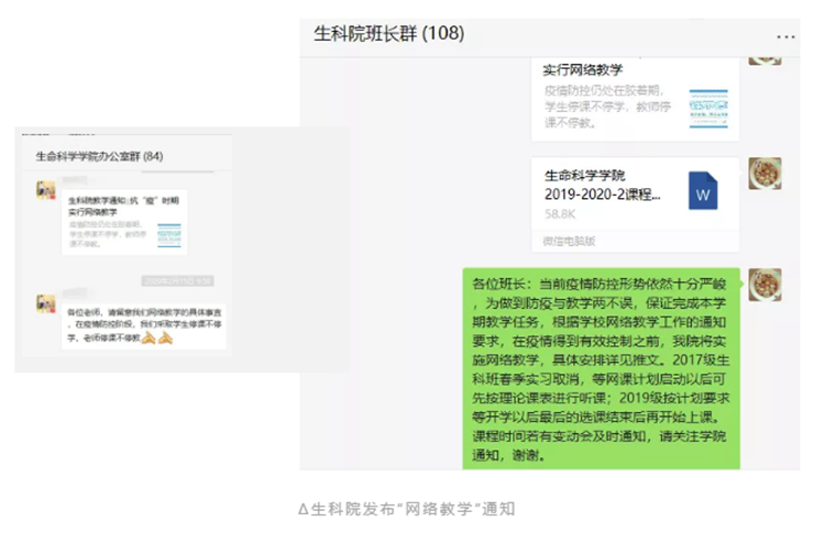 生科院采取这种人性化的做法,主要是为了使学生学习效果优先的原则能够落地。等3月9日这个时间到了,网络教学开始了,学院将密切观察,研究解决可能出现的问题。