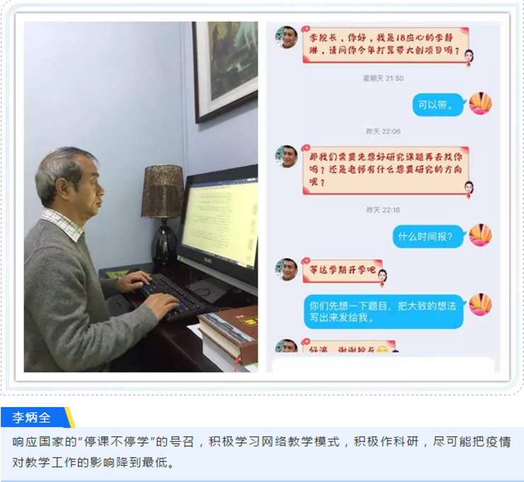 上周开始,刘璟通过网络指导学生学习。他提醒学生们在家要保持合理的生活作息,劳逸结合,科研工作和防疫工作两不误。