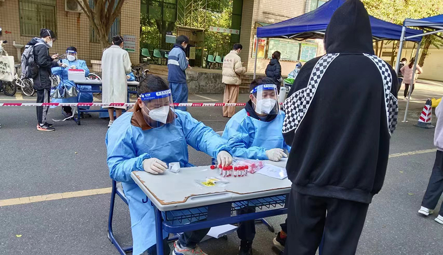 图片说明:12月20日,机关党员志愿者积极参与考研学生核酸检测工作。据了解,本月24日至25日,2023年研究生招生考试将在永利官网如期举行。为保证考生和考试工作人员健康安全,学校根据疫情防控要求,组织开展了本次核酸检测活动。