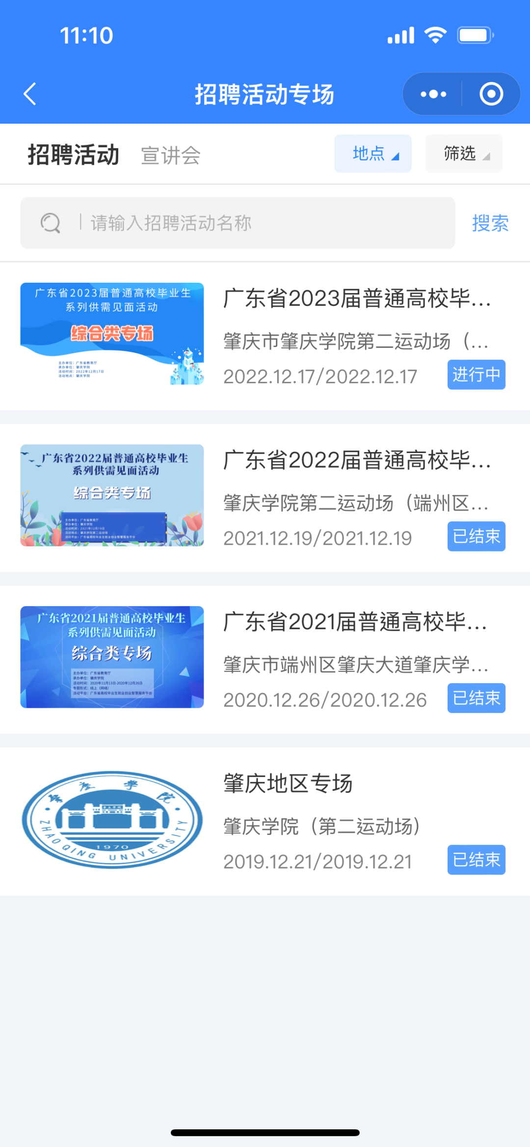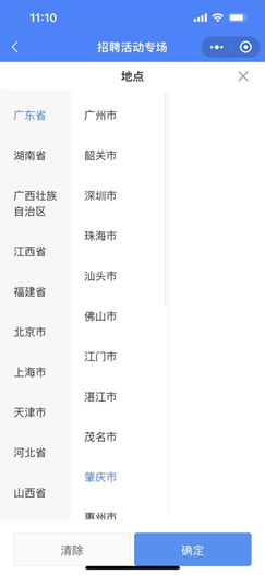 进入招聘活动专场后,点击右上方的地点,选择广东省/肇庆市,进入12月17日“yl23455永利官网综合类专场”;